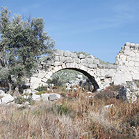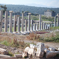 Gelemiş köyünden 2 km sonra yol kenarında Patara'daki kalıntıların en görkemlilerinden Roma Zafer Takı görülür. Zafer takı, M.S. 1. yüzyıl sonlarında yaptırılmıştır. Tepeye doğru görülebilecek kalıntılar arasında hamamlar, Bizans bazilikası, Korinth nizamında tapınak bulunmaktadır. Tiyatro tepenin yamacındadır ve önemli bölümü kumlar altındadır. Tepede de Athena Tapınağı vardır.